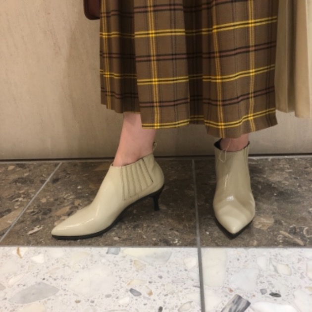 足元には、トレンドのショートブーツを使用。