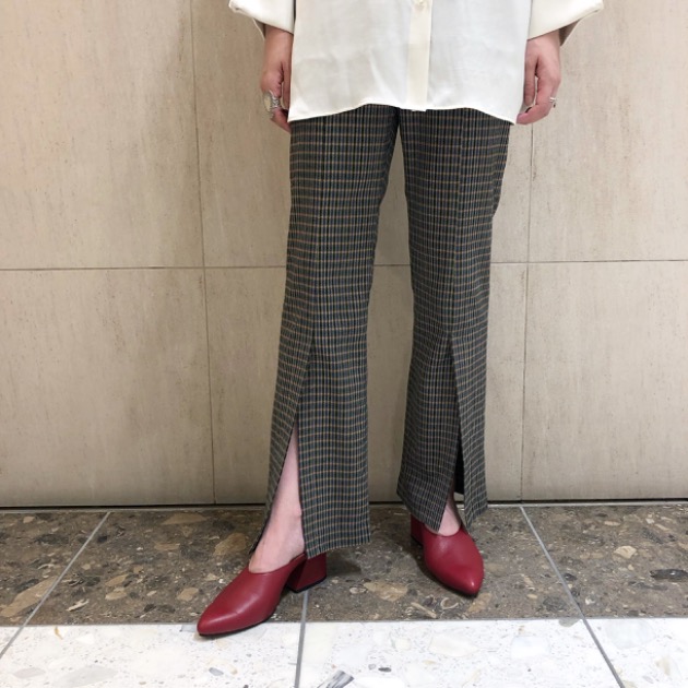 今シーズン、マストアイテムのフレアパンツ!フロントのスリットもポイント。Tシャツと合わせて、今すぐにでも着たいアイテムです!