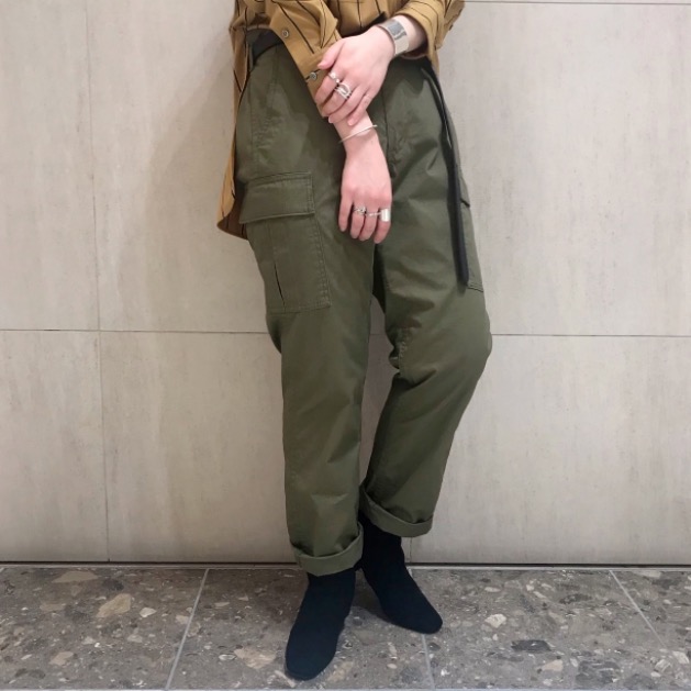シャツと合わせて大人カジュアルなスタイリング。カーゴパンツはちょっと苦手。。という方にも、ぜひ挑戦していただきたいアイテムです。