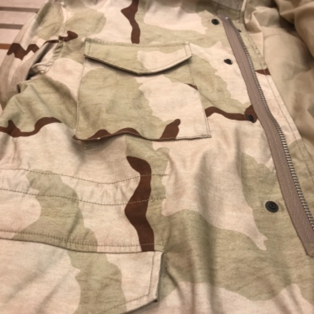 フードもその時の気分で。デザートカモのフードの裏地はウッドランドカモになります。両面プリントです。