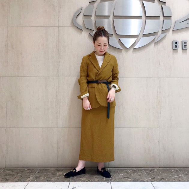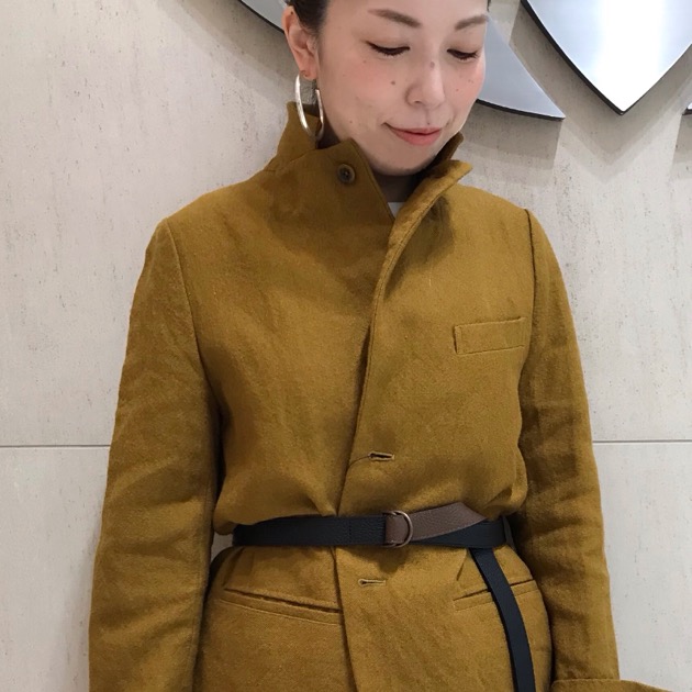 さっと羽織るだけでもサマになりますが、このようにベルトでウエストマークするのもおすすめです。