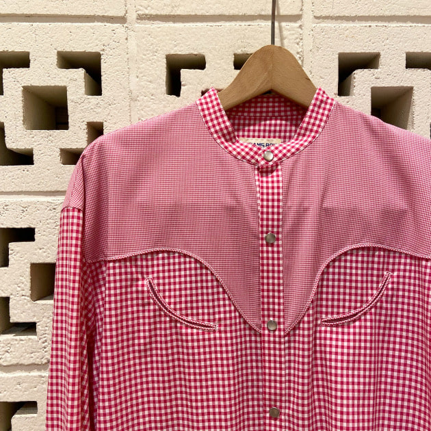 BEAMS BOY / ギンガム ウェスタン ノーカラー シャツ
