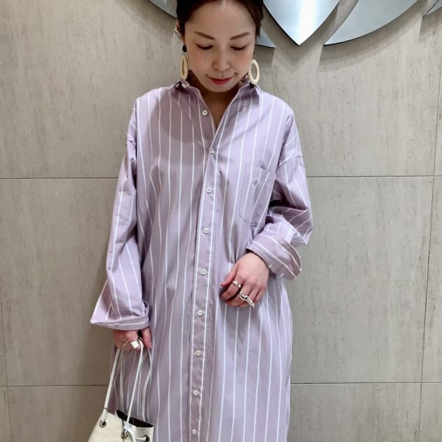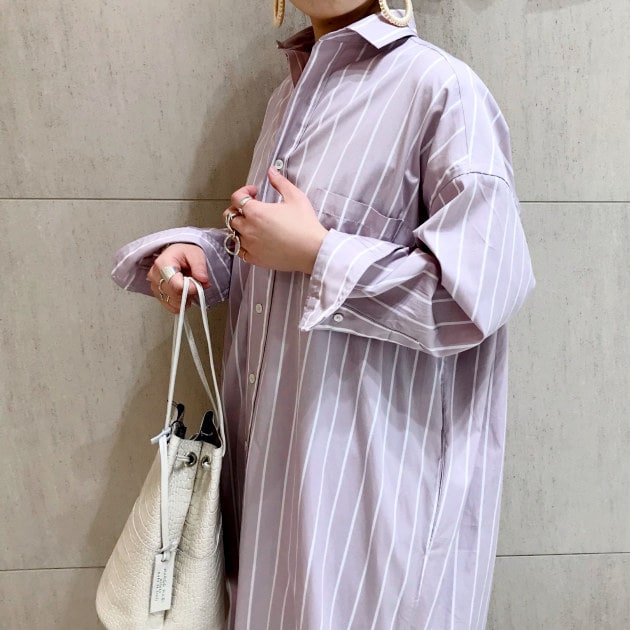 TICCA / ストライプ スクエアビッグ ロングシャツ