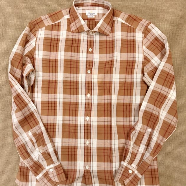 GIANNETTO / 別注 コットンリネン タータンチェック ワイドカラーシャツ