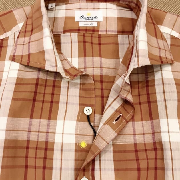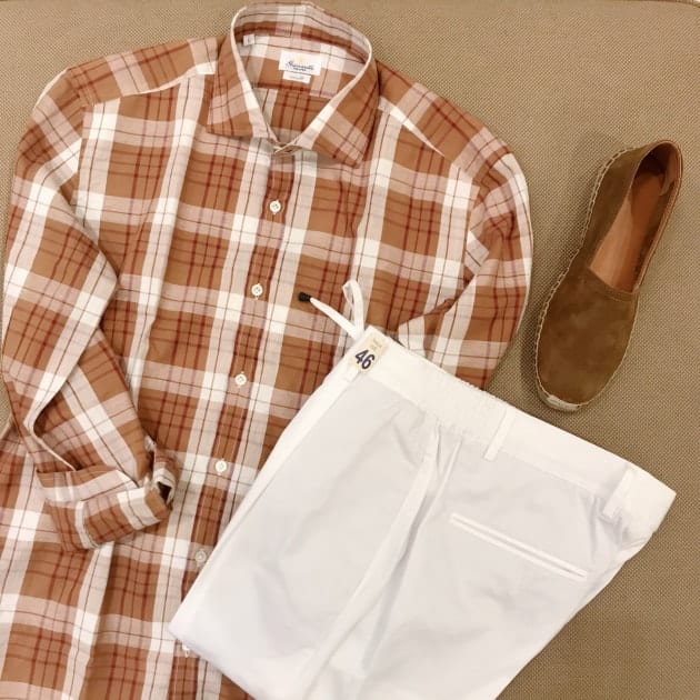 綿麻の涼しげな生地で、ブラウンベースのチェックが重くなくイイ雰囲気です。