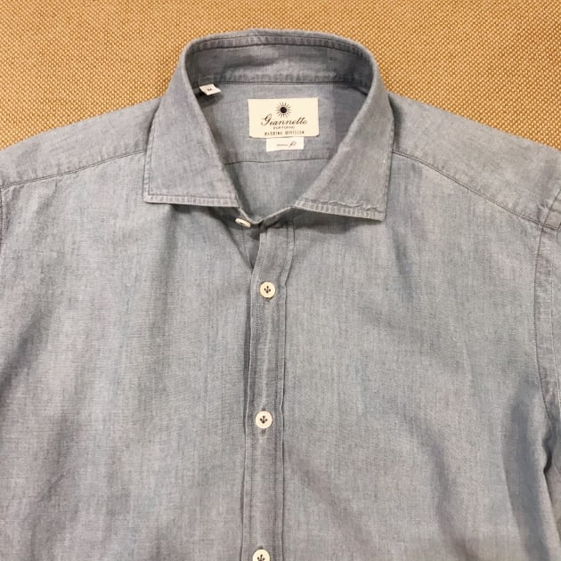 GIANNETTO / 別注 シャンブレー ワイドカラーシャツ