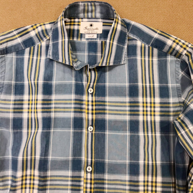 GIANNETTO / 別注 シャンブレー チェック ワイドカラーシャツ