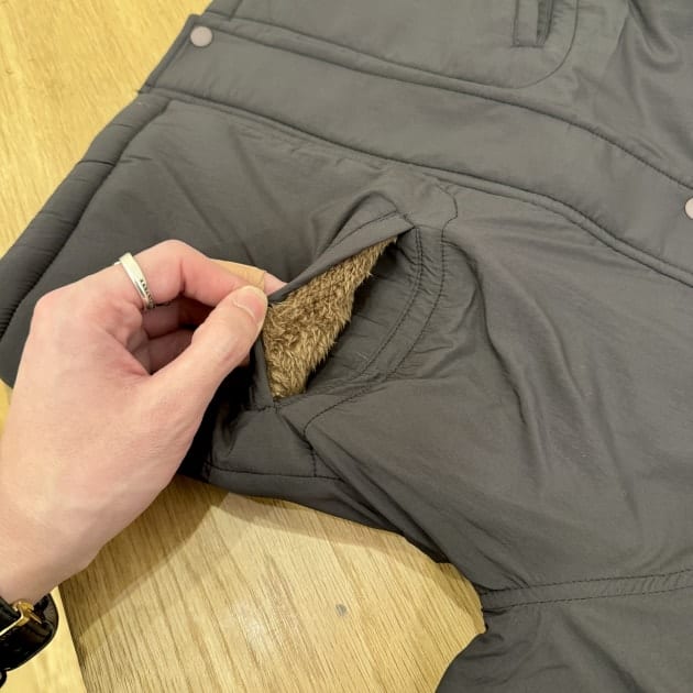 お子様にポケットに手を入れるのを推奨は出来ませんが、手を入れても暖かくちょっとした嬉しいポイントです。