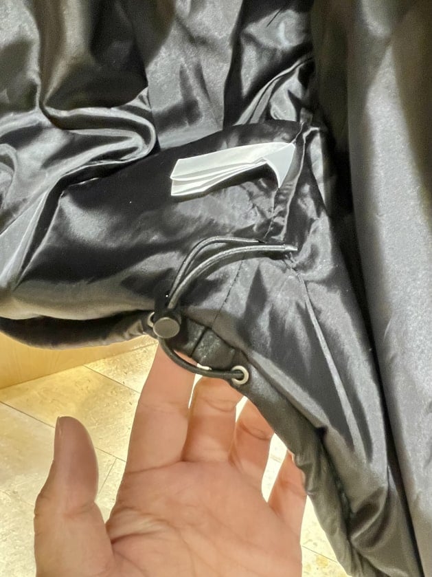 裾にはドローコードが付いておりますので身幅を絞る事も出来ます。