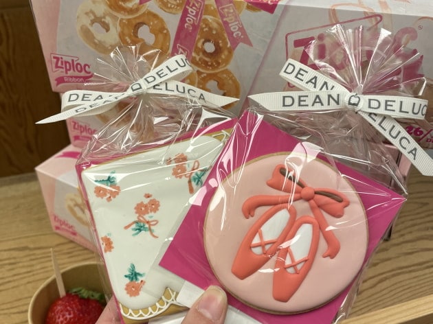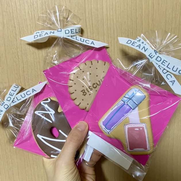 Ziploc Ribbon のパッケージに描かれているアイテムがアイシングで表現されています♪