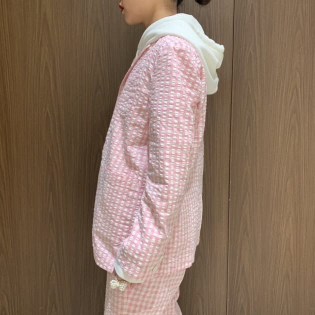 「春だ、、、!!」と思わせてくれる爽やかなギンガムチェックのセットアップです。