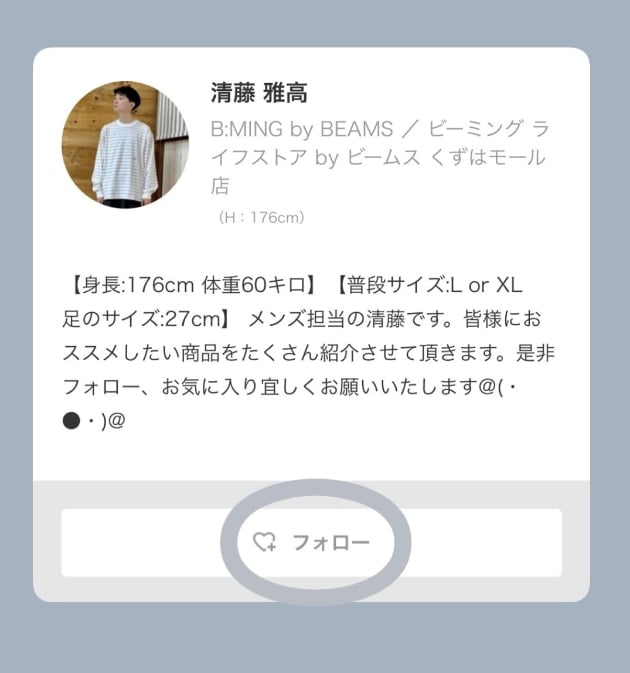 ご希望のカラーとサイズの「試着」ボタンを押し、「ビーミング ライフストア by ビームス くずはモール店」を選択して頂けますと、当店にてご試着可能です。