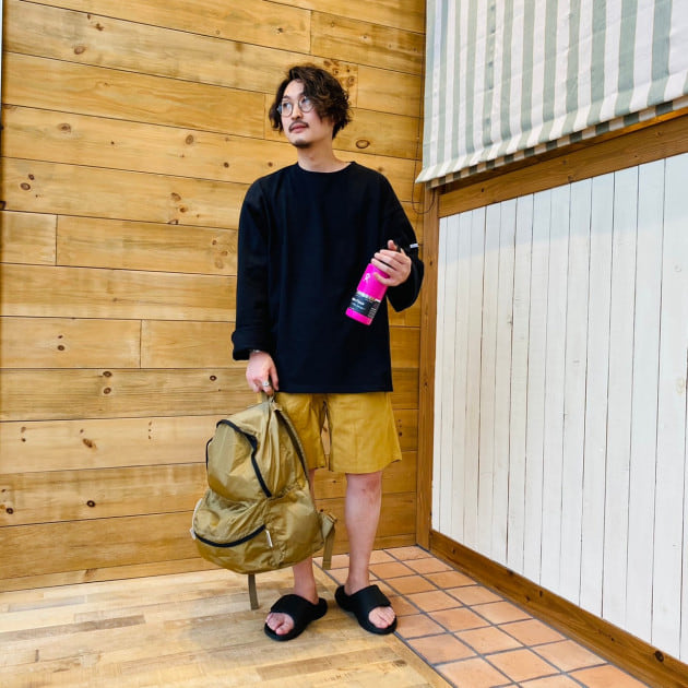 優しさといえばと思い、我らショップマネージャーの東さんに履いて頂きましたがそんなに目立つ事なく、シンプルなスタイリングにも使えます。