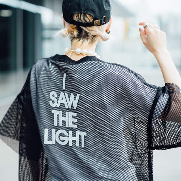 バックコンシャスに "I SAW THE LIGHT"(瞳の中の愛)のシンガーらしいメッセージ。
