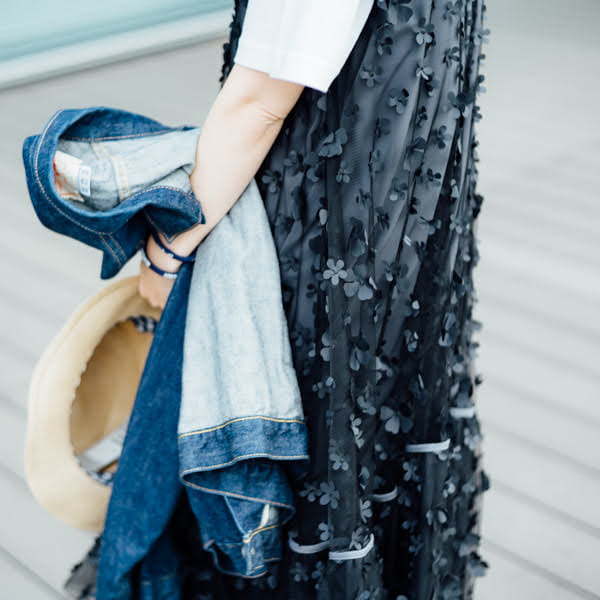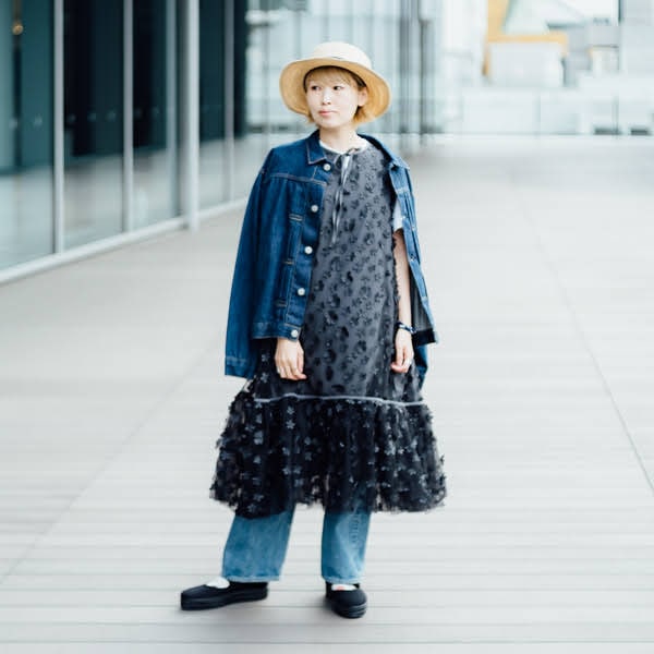 デニムアイテムとMIXした大人可愛いカジュアルスタイルの出来上がりです!