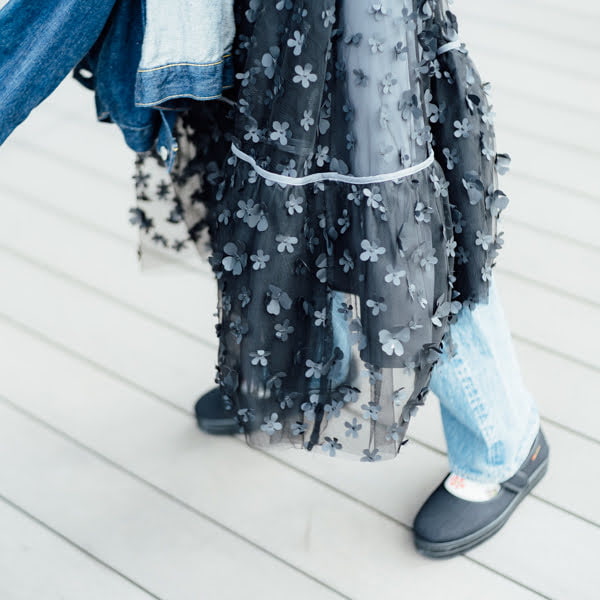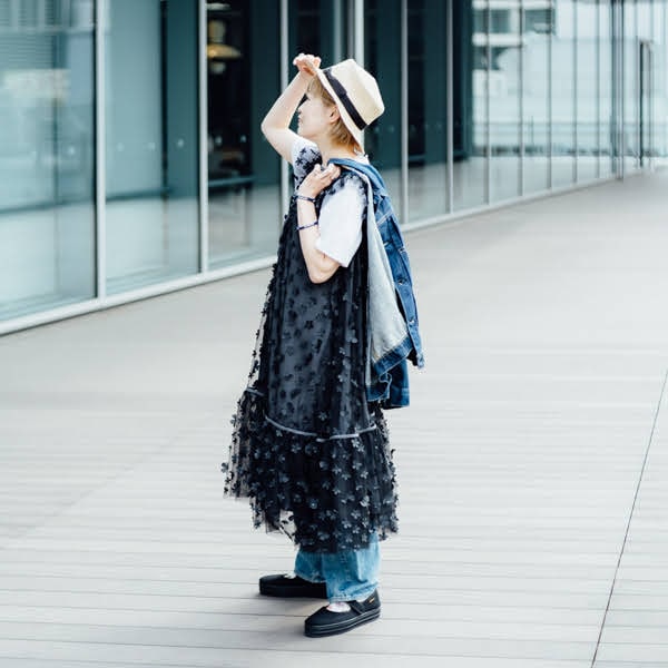 チュール素材にフラワーモチーフが愛らしいワンピース!