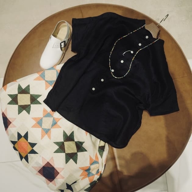シャツはブラックを選ぶ事で大人っぽく。