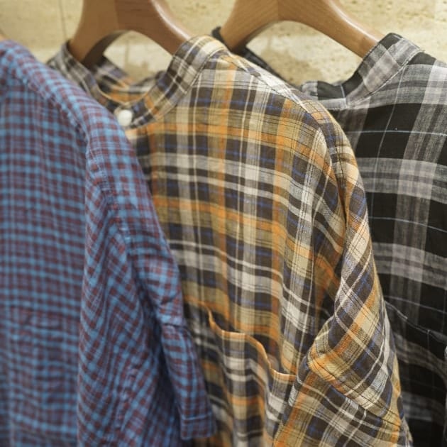 【7/4新規値下げ】BEAMS BOY / リネン チェック スタンドカラー シャツ