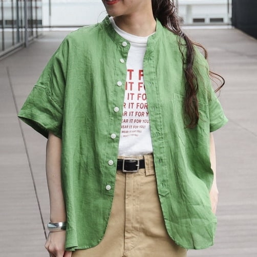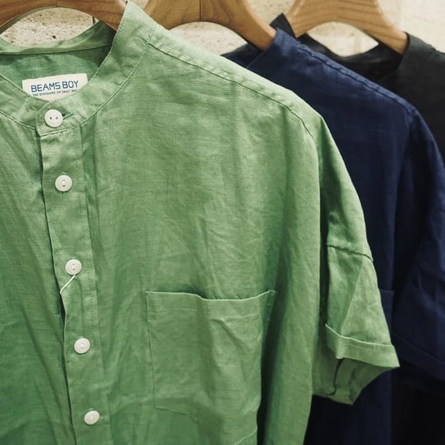 【7/4新規値下げ】BEAMS BOY / リネン ソリッド スタンドカラーシャツ