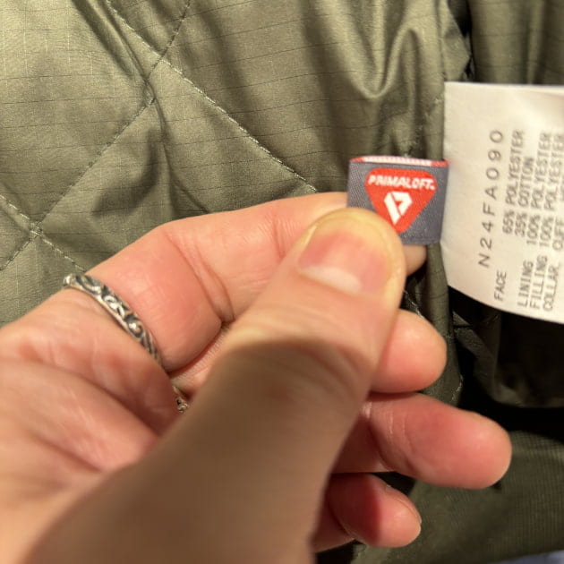 65/35ベイヘッドクロスでインサレーションには機能素材プリマロフト(R)を使用してるので薄くて暖かいのが特徴的です。