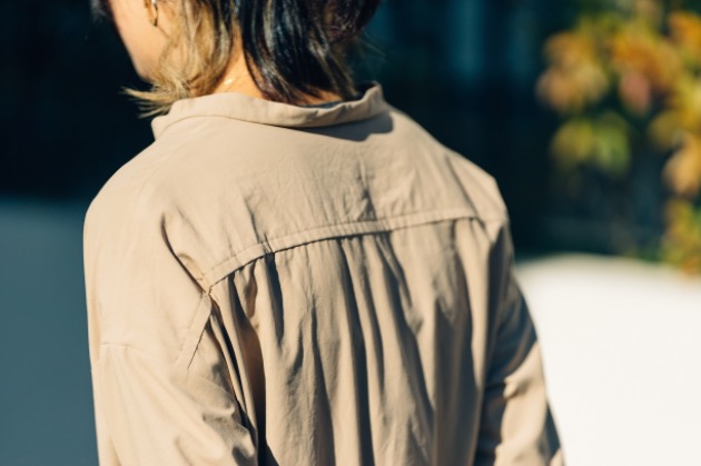 胸下のドローコードで調整してギャザーを作れるので、自分の好みに合わせた着こなしができます。