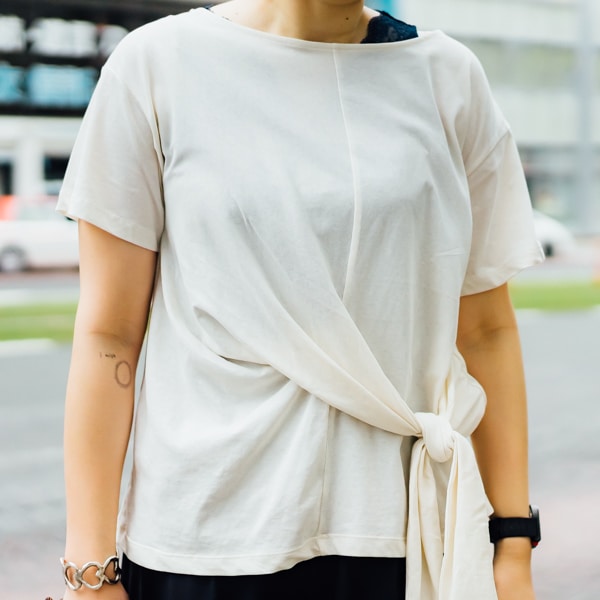 Ray BEAMS / アシメ ドレープ ノット Tシャツ