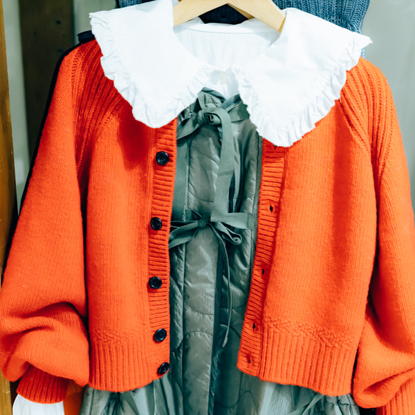 ワンピース+ロングベスト+ショート丈のカーディガン