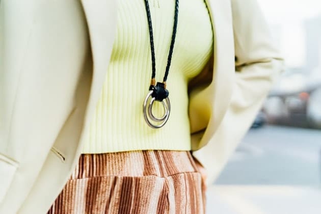 シンプルなお洋服と一緒に合わせてのスタイリングなんていかがでしょうか。