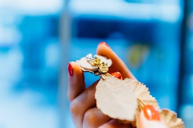 FUMIE=TANAKAのコレクションでも人気の高い、レザー素材のアイテムをアップデートしたイヤリング。