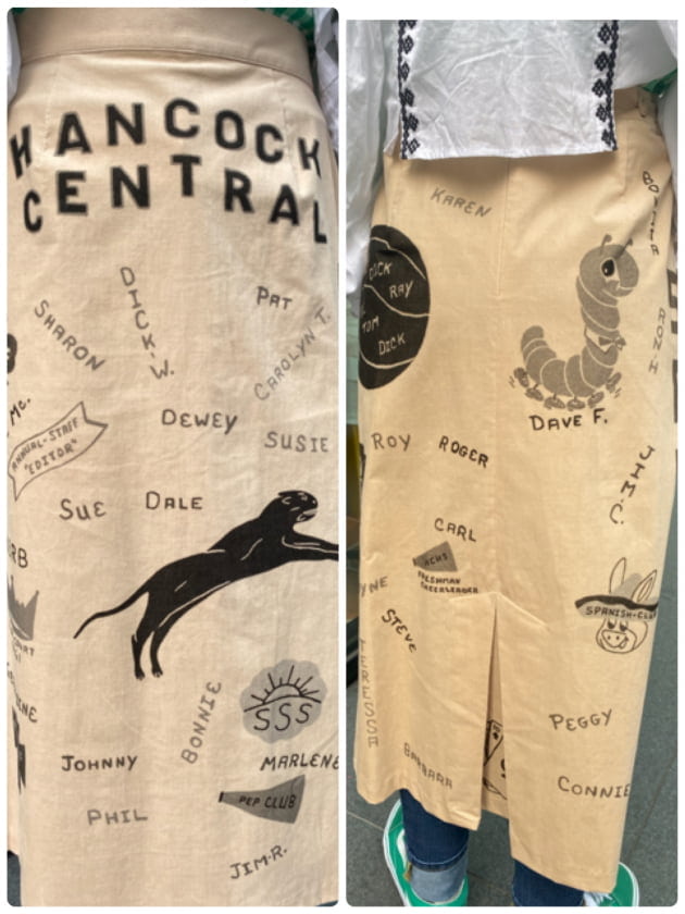そしてインパクトあるスカートは、前後落書きチックなオリジナルプリント。