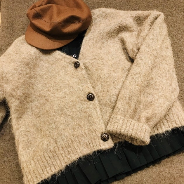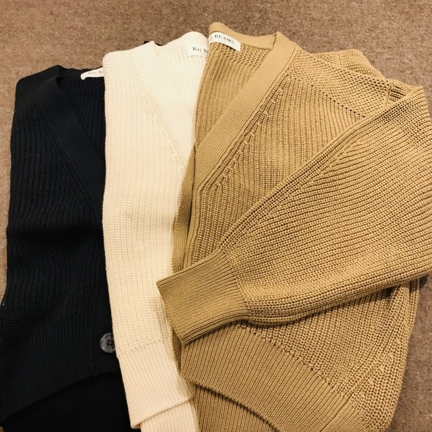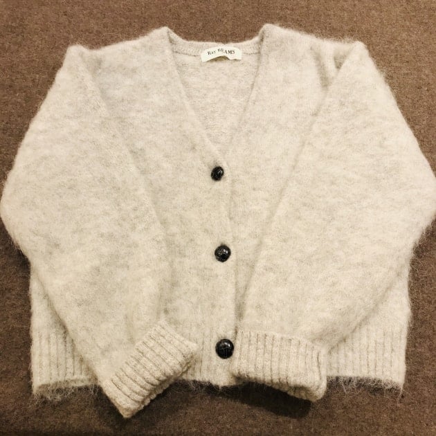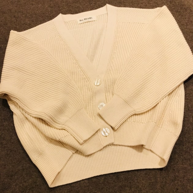 Ray BEAMS / ワイドスリーブ アゼ Vネック カーディガン