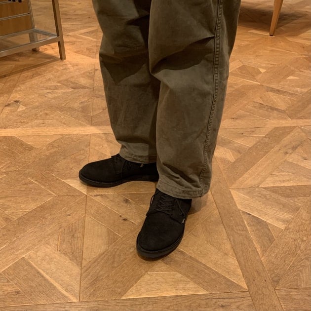 サービスシューズのような見た目ですが、表革ではなくブラックスエードの別注モデル!