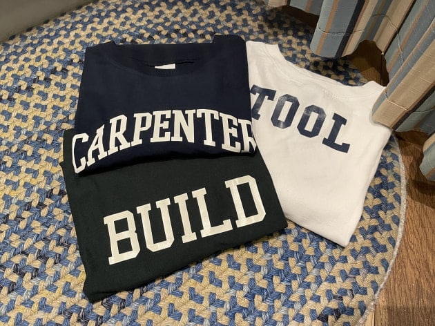 カレッジロゴかと思いきや、読んでみると『BUILD』『CARPENTER』『TOOL』そしてハンマー…
