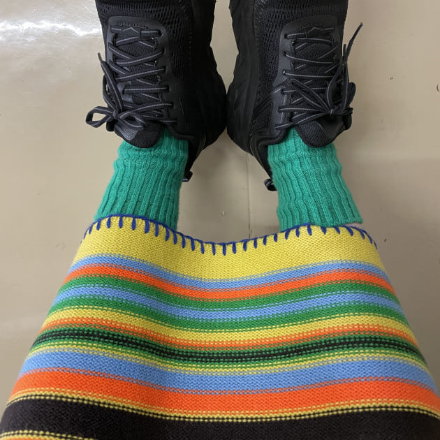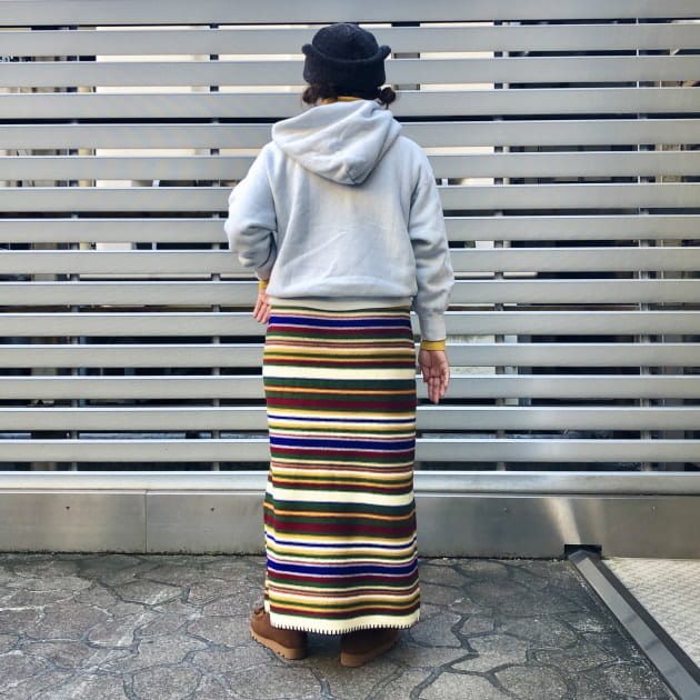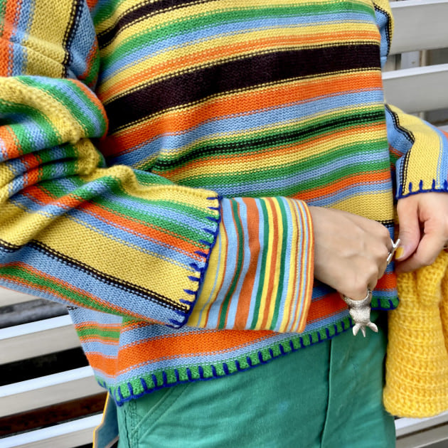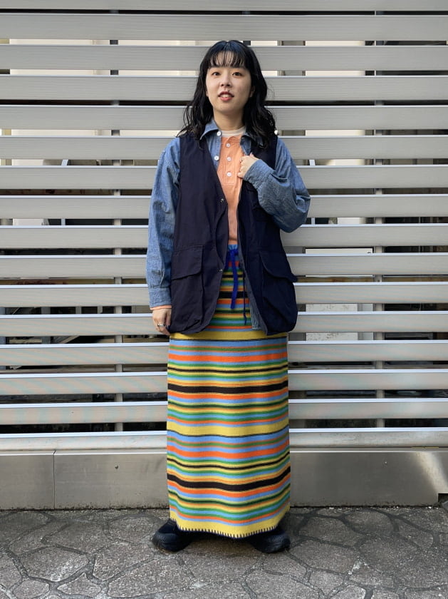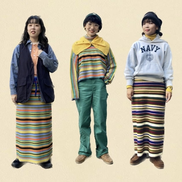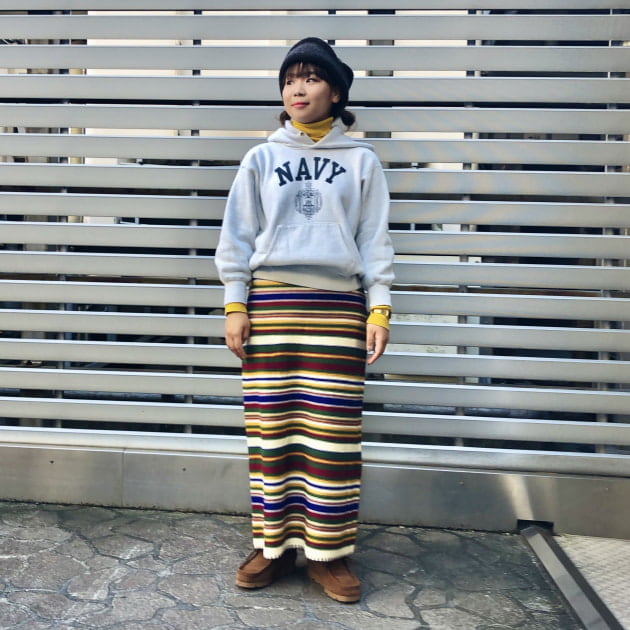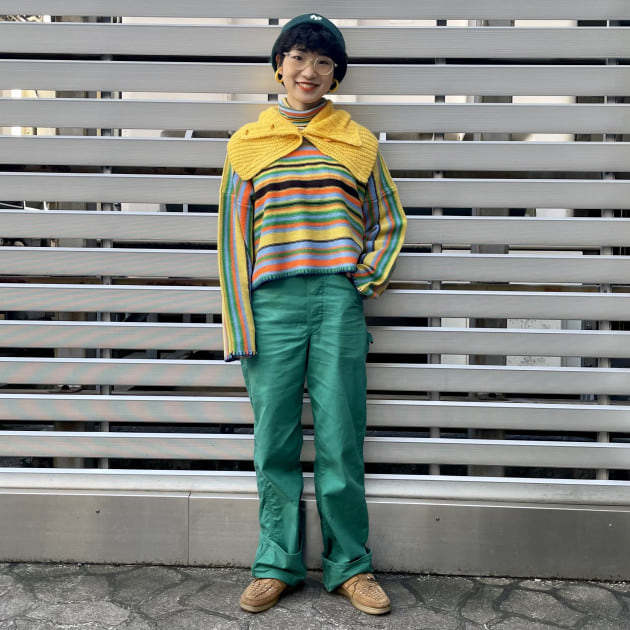 イエローの方のボーダーに入っている色たちが、自分の持っている服の色味に近かったので色を拾いやすいかなと。