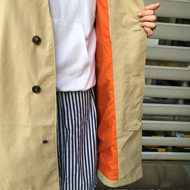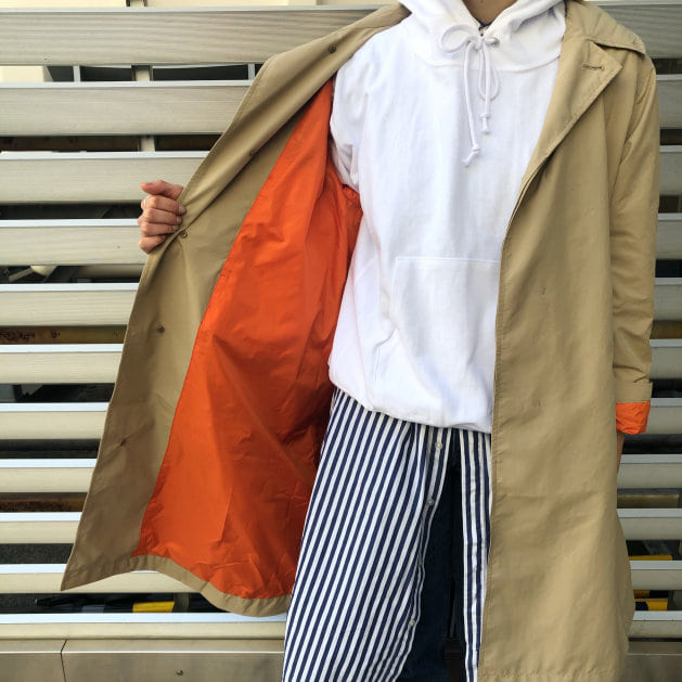 裏地のオレンジが効いており、袖を捲って着るのがオススメです!