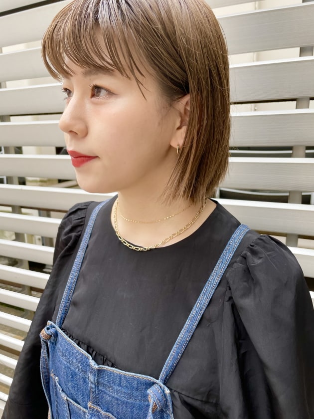 鎖骨にかかる長さで、重ね付けもしやすい長さです。