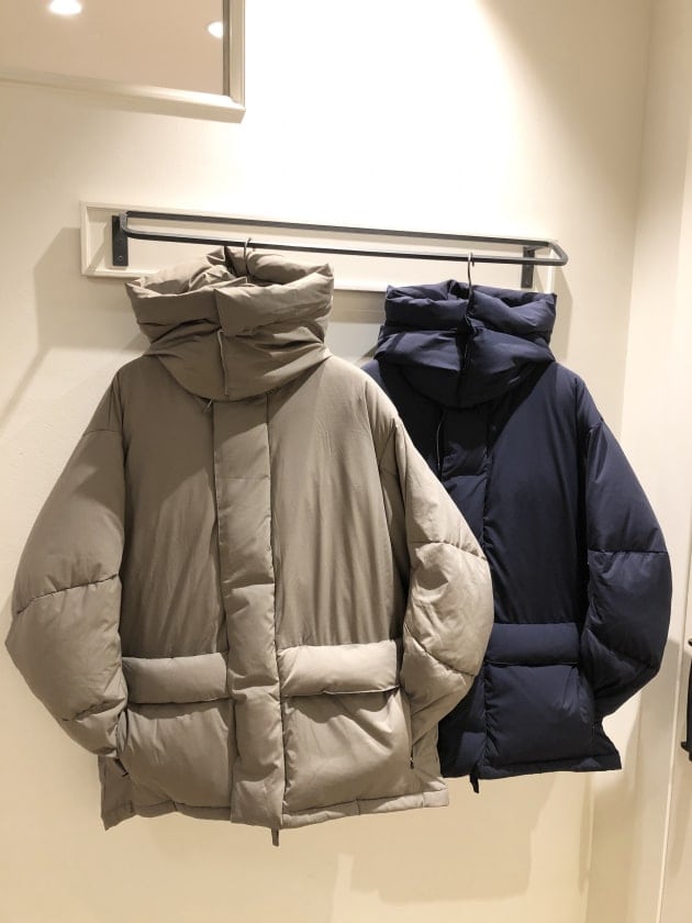ダウンのボリューム感に加えて肩が落ちるルーズフィットなデザイン。