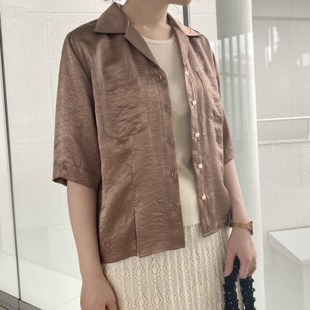 Ray BEAMS / ワッシャー サテン スリット シャツ
