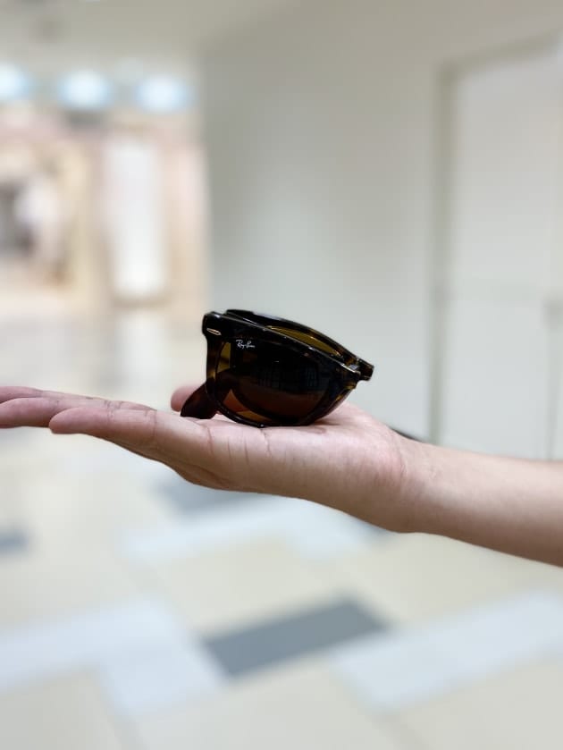 手のひらより小さいサイズ間でタフなアイウェア!夏の移動の際とても助かる機能ですね!!