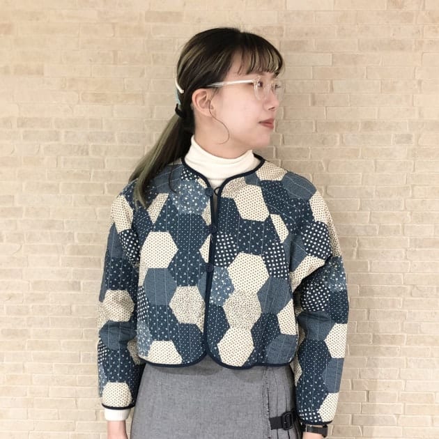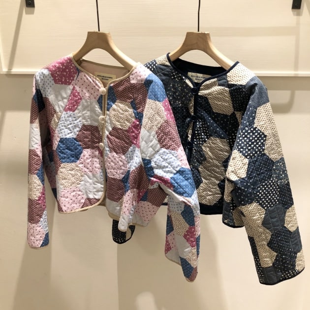 パッチワークプリントのキルティングジャケットになります!