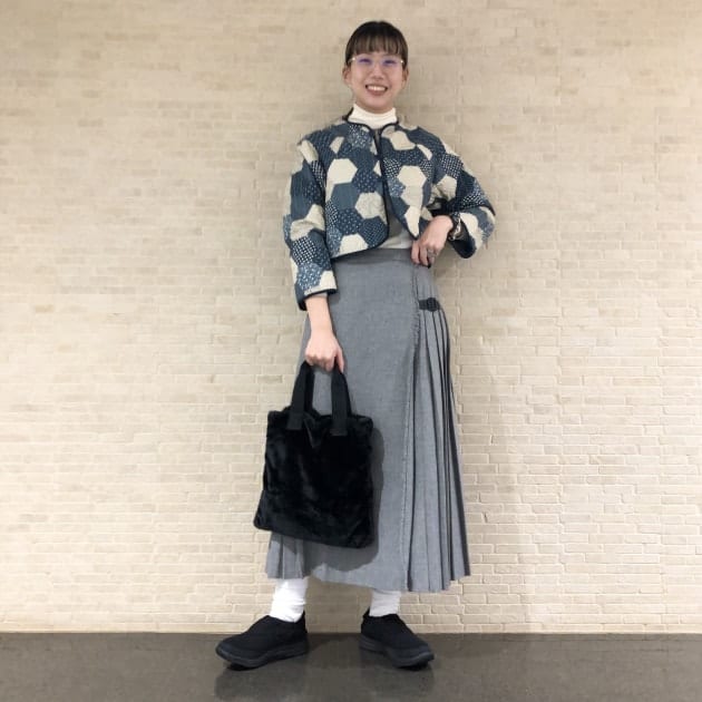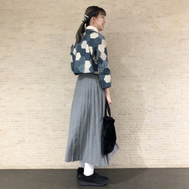 冬らしい淡いブルーのジャケットに同じトーンのグレーのスカートを合わせました!