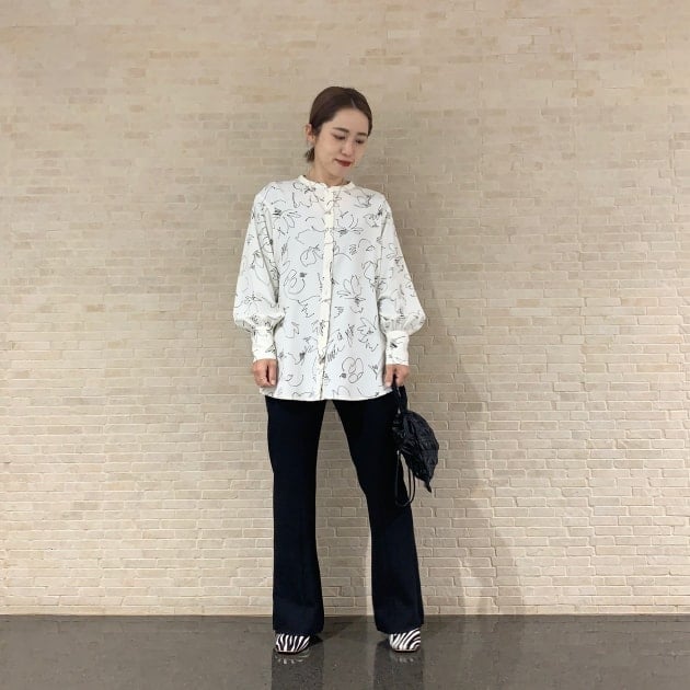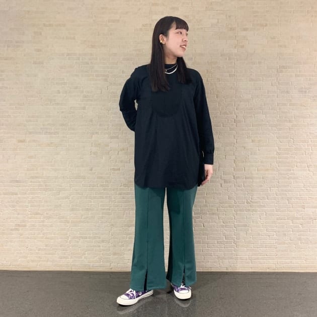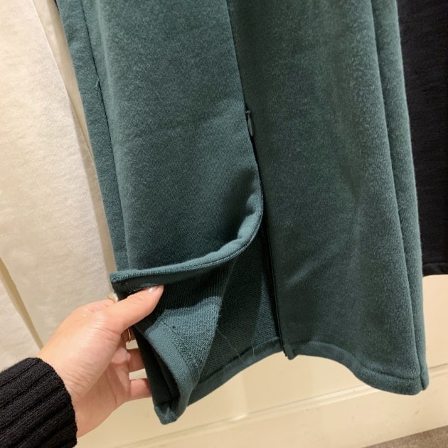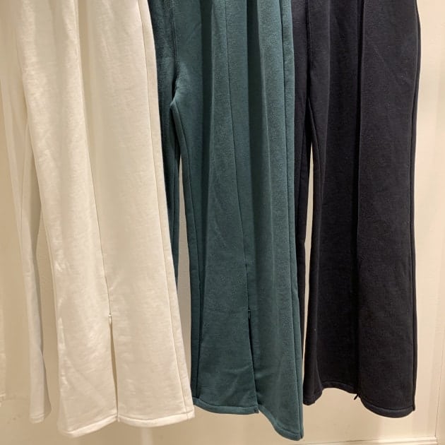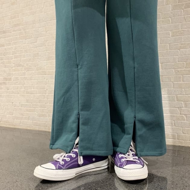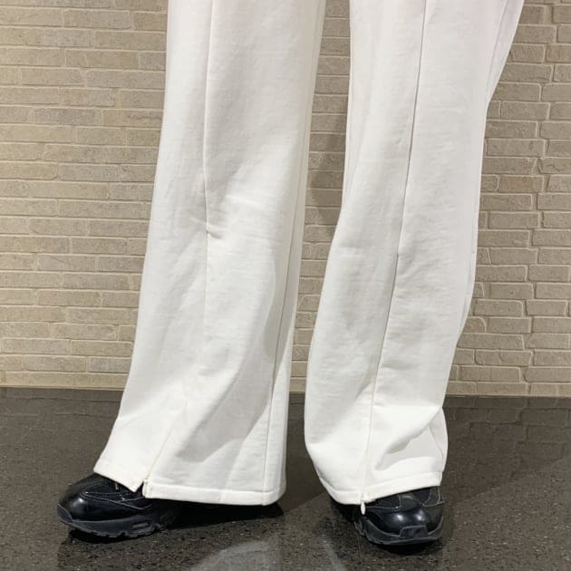 フレアシルエット、裾ZIPは先程の共通しているのですが、先程のパンツと比べると全体的にゆったりとしたシルエットになります。