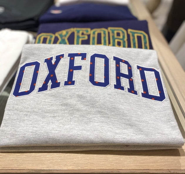 フロントにカレッジロゴ!シンプルなデザインですが、両色『OXFORD』の文字の中を見ると…それぞれ違ったデザインが施されています!きゅんです!