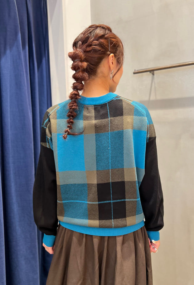インラインで展開しているシャツのタータンチェック柄を大きくし、ニットに落とし込んだデザインにアップデート。