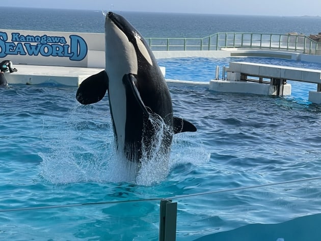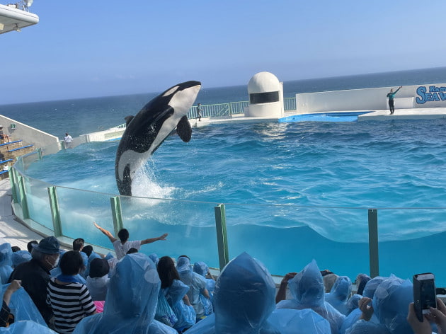 涼しそうでしょ?ずっとシャチのショーを見たいって言ってたから一緒に観に行ったんですよ。凄いよ。なんかイルカのショーとは比べられないんだけど、迫力だけで言えばシャチだね。
