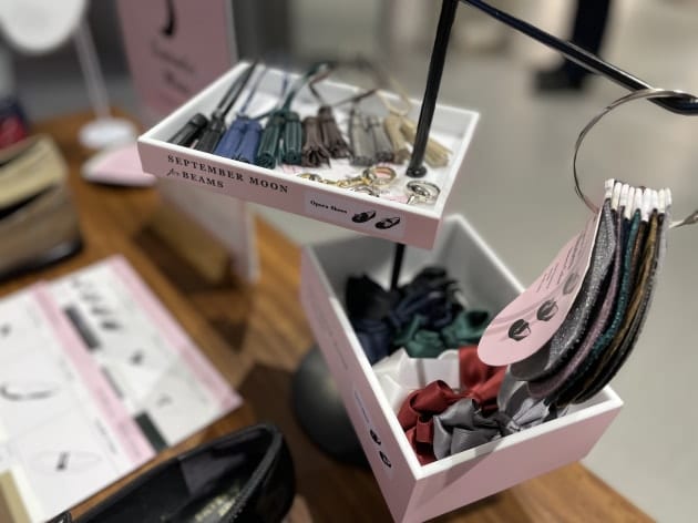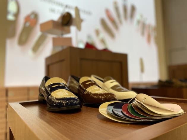 今回のフェアではシューズのカラー、リボンやパイピングなどをお客様のお好みでカスタムして頂けます。