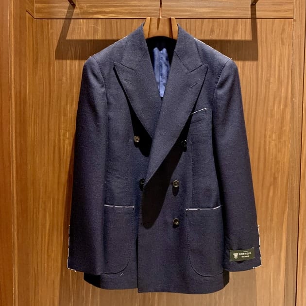 〈DORMEUIL〉のウールモヘヤ生地を使用したダブルブレストジャケットです◎