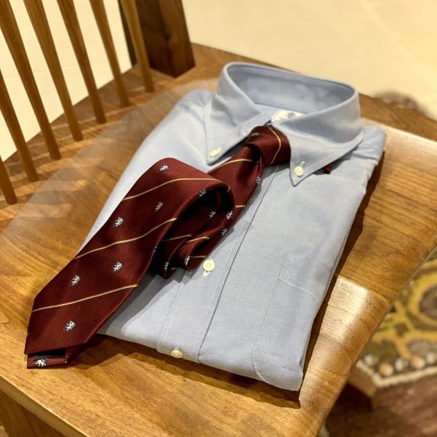 シャツとネクタイには、アイビールックの語源でもある〈アイビーリーグ〉の学生の雰囲気が出るようなアイテムに◎
