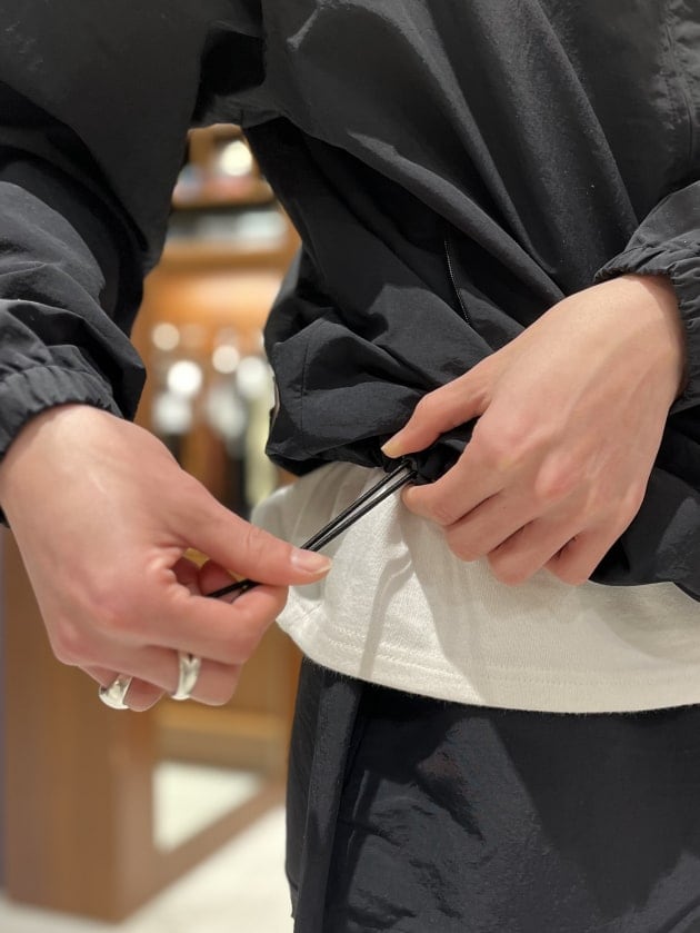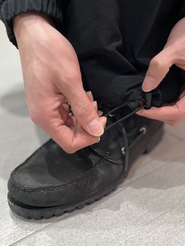 ドローコード付属でお好きなシルエットに調節してみてください◎僕はギュッと絞って短丈スタイルで着用しています!
