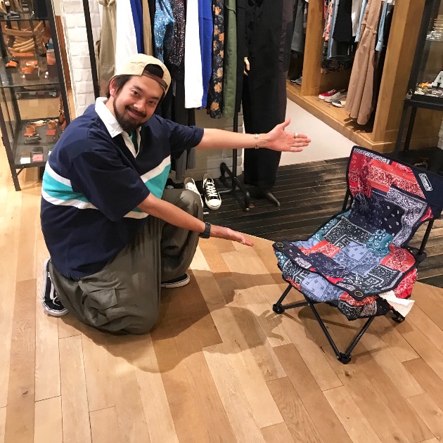 なんと言ってもコンパクト!なファンチェアを京都店1アウトドア好きなタカダさんに組み立てて貰いましょう(^_^)☆